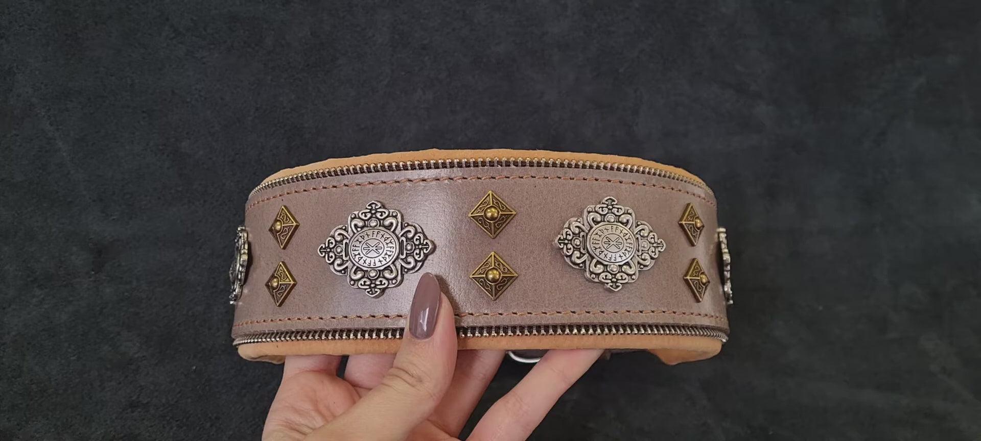 This collar features a base layer of 3.6 mm thick high quality italian belt leather, meant only for the finest men`s belts. this is the GREY version.
