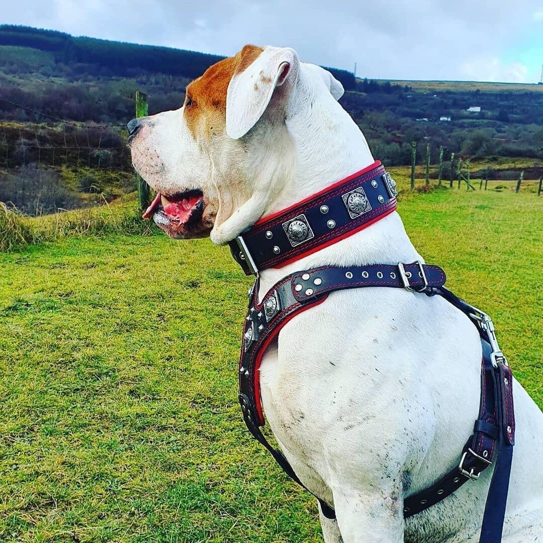 This Set fits perfectly on all large breeds, like: Pitbull, cane corso, American Bully, American Bulldog, Bulldog, Presa canario, Rottweiler, Boxer, Amstaff, Staffordshire terrier, Bullmastiff, and many more..