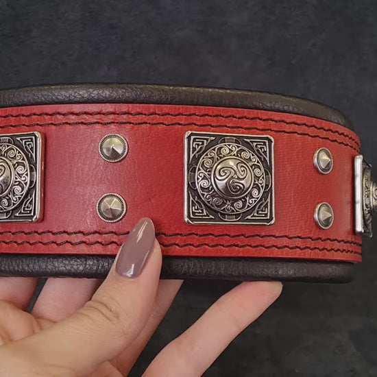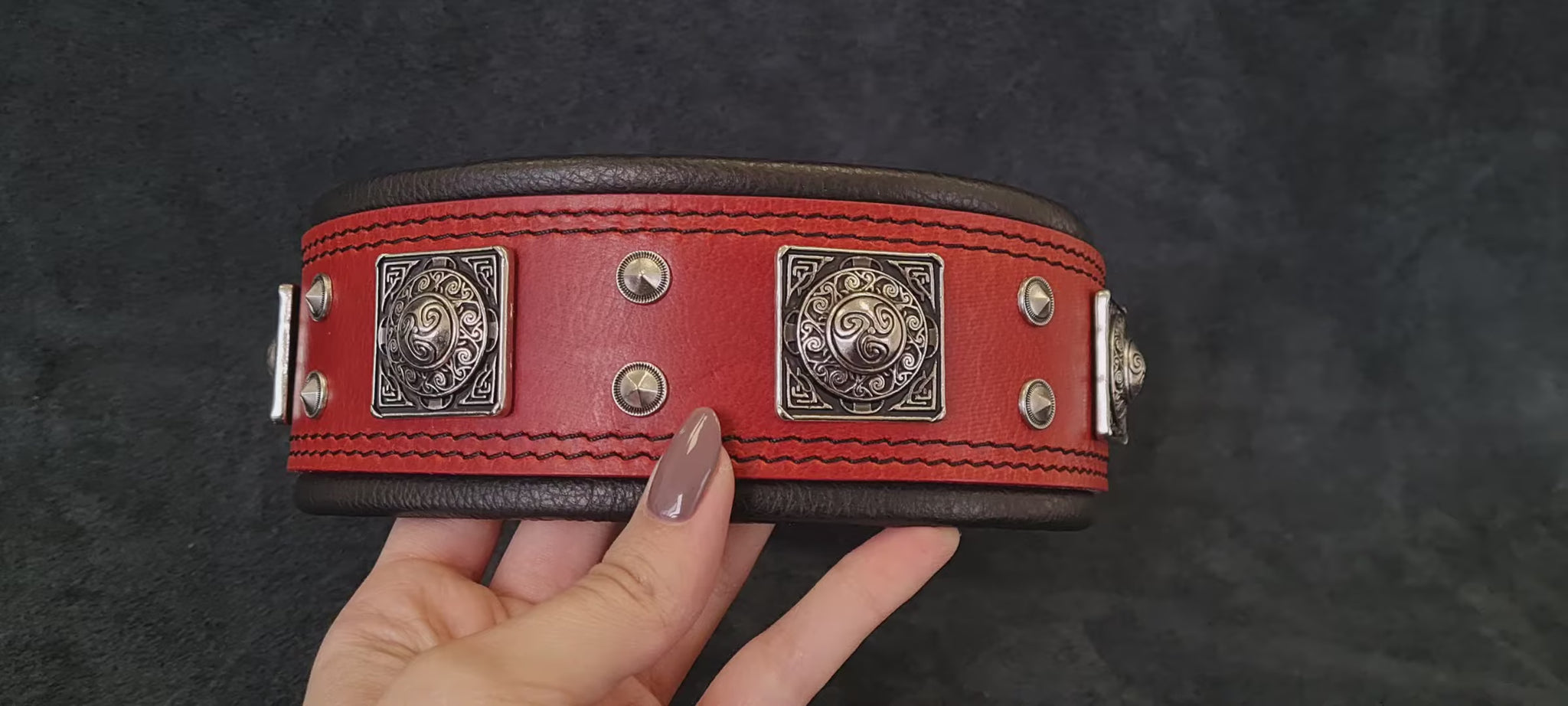 The "Eros" collar, part of our "Exclusive" collection, features a combination of two rivet models.