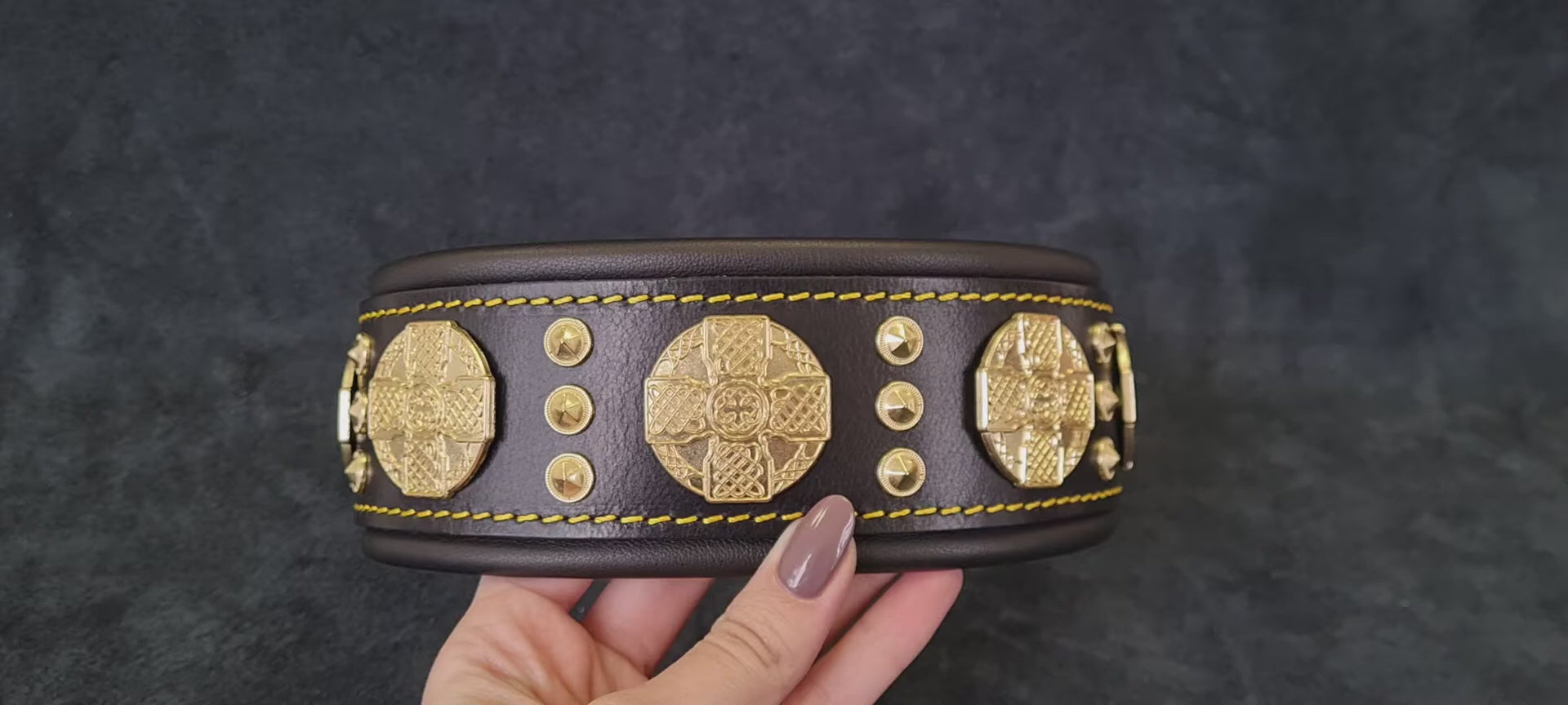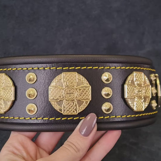 This collar has a base layer of 4 mm thick high quality belt leather. Extremely durable. On the inside it has a soft lamb leather cushion.